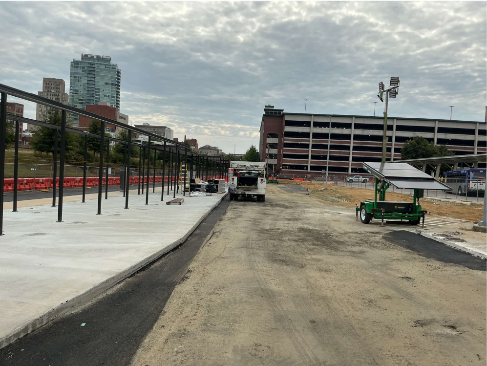 Conduit installation will begin along the curb near Bay 1B as part of the next construction phase.