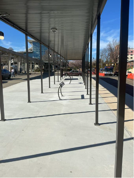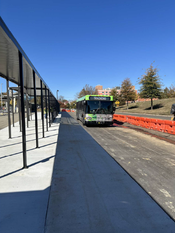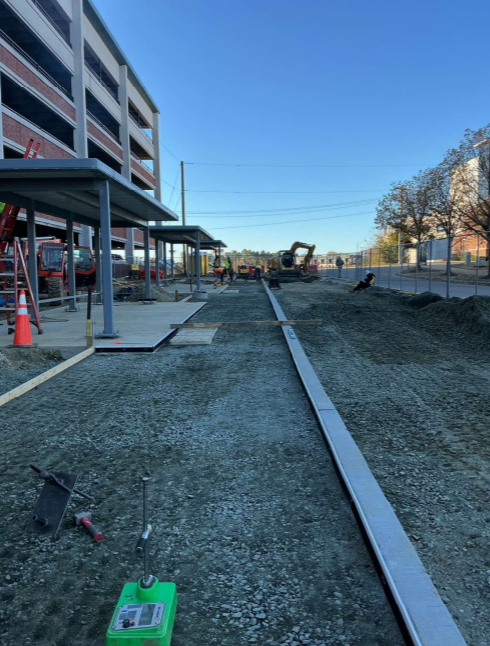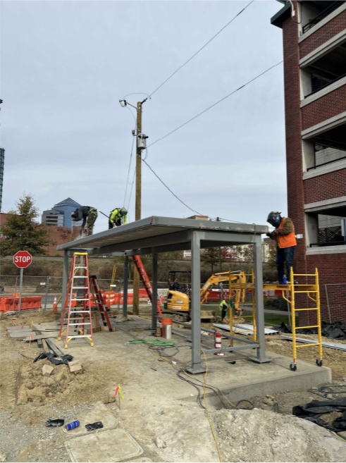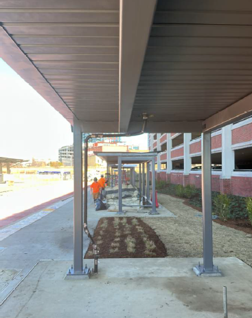 Construction crews have successfully completed the temporary bus loop. This development will enable buses to efficiently board passengers once construction begins on the existing bus loop. Additionally, significant progress has been made on the installation of the erecting bus shelters located directly in front of the parking deck.